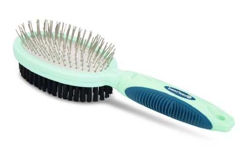 De Beeztees Combi Borstel heeft een dubbele functie: met de pennenzijde wordt de vacht los gemaakt en worden losse haren verwijderd. Met de borstelzijde wordt vuil en losse haren verwijdert aan de oppervlakte van de vacht. Regelmatig kammen zorgt ervoor dat de vacht van jouw hond gezond blijft en gaat glanzen. Borstel altijd in de richting van de haargroei. – Voorzien van soft grip – Geschikt voor de kort- tot langharige vacht
