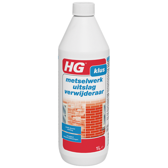 HG metselwerkuitslag verwijderaar verwijdert eenvoudig en grondig metselwerkuitslag, ook wel bekend als salpeteruitbloeiing. Onze metselwerkuitslagverwijderaar heeft een snelle, directe werking waardoor deze lelijke witte uitslag zo van de buitenmuur is verdwenen.