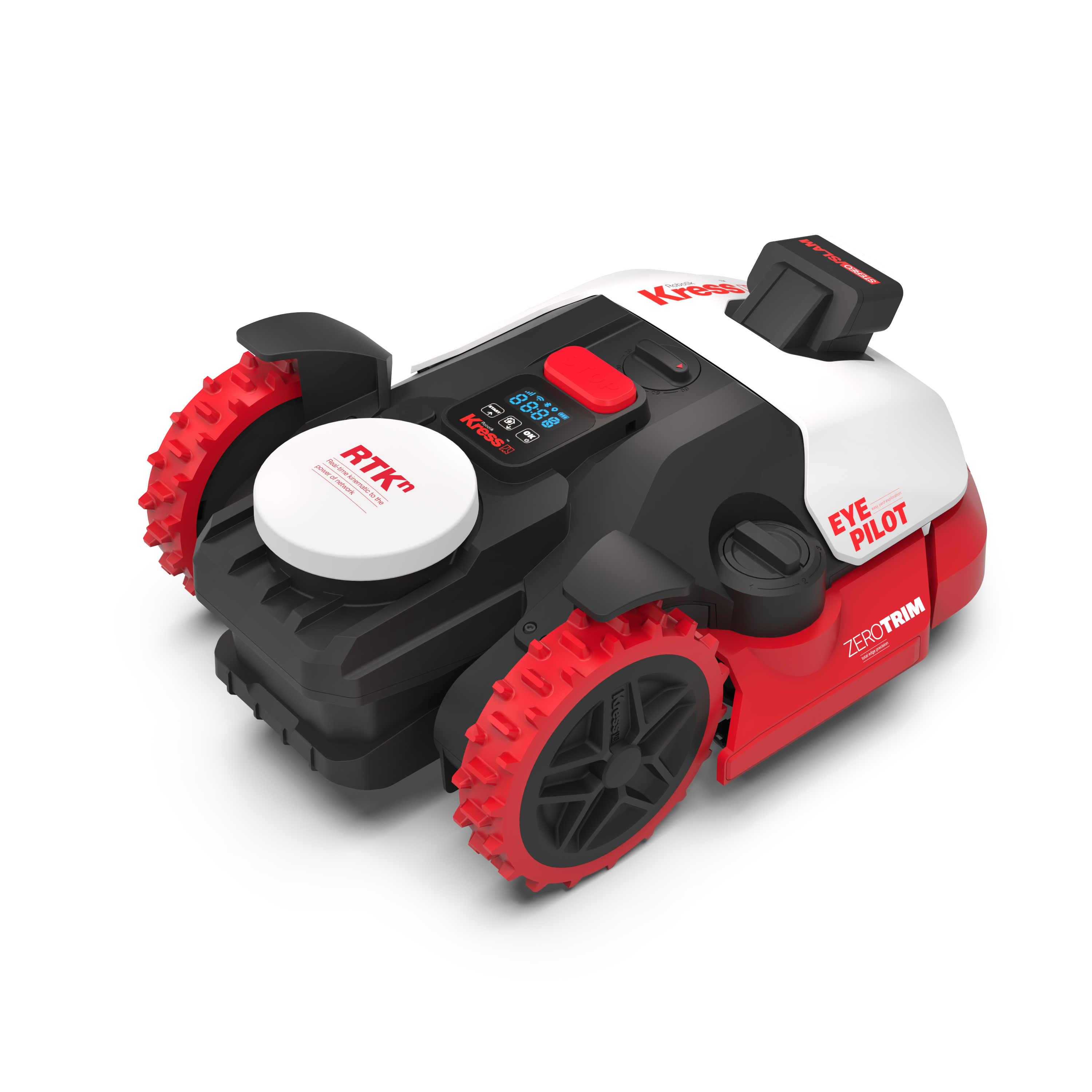 De Kress KR273E combineert kracht en intelligentie in één compacte maaier. Uitgerust met stereo EyePilot®, RTKn-navigatie en ZeroTrim-technologie, maait hij met ongekende precisie tot aan de rand van het gazon.
